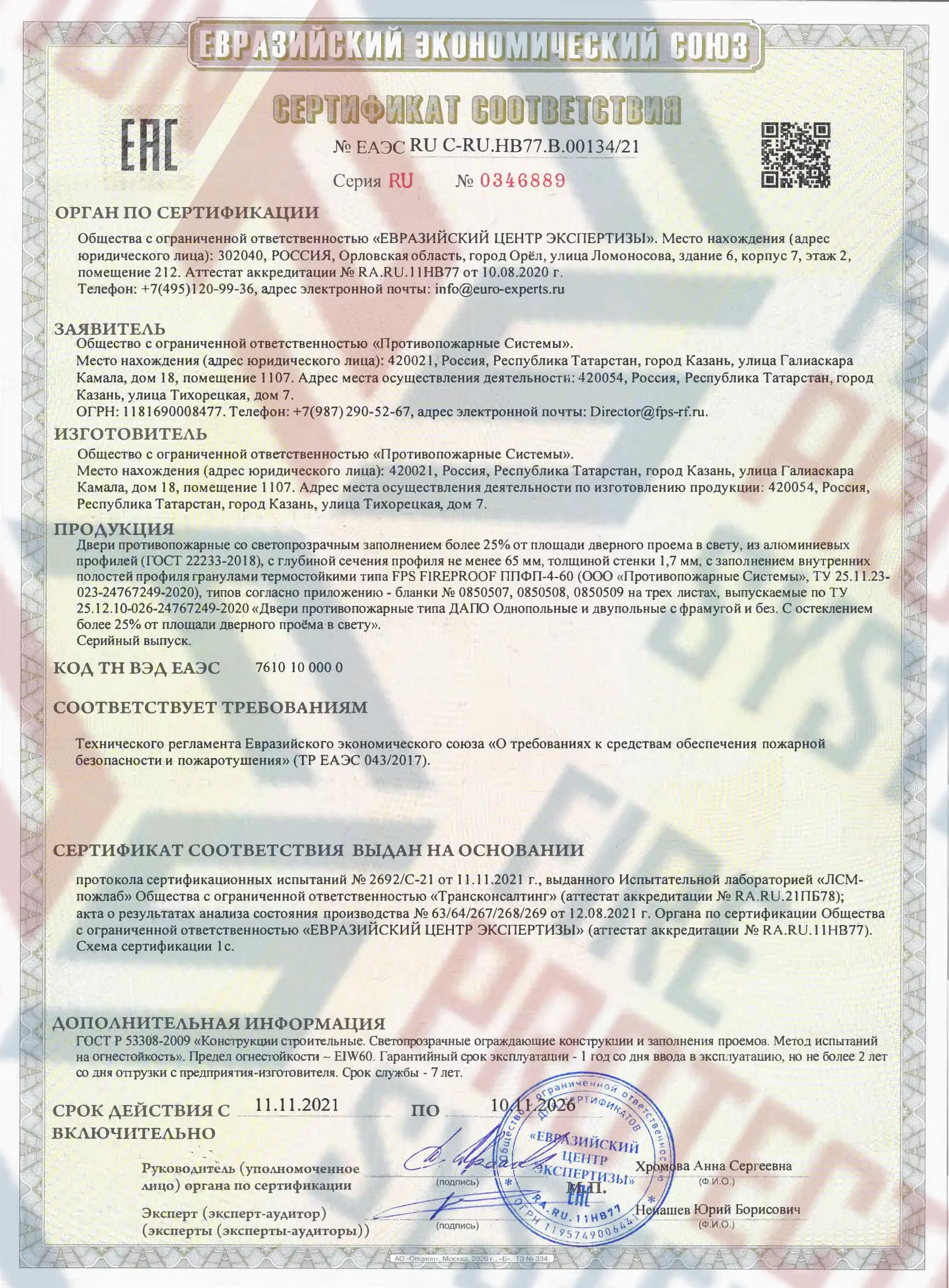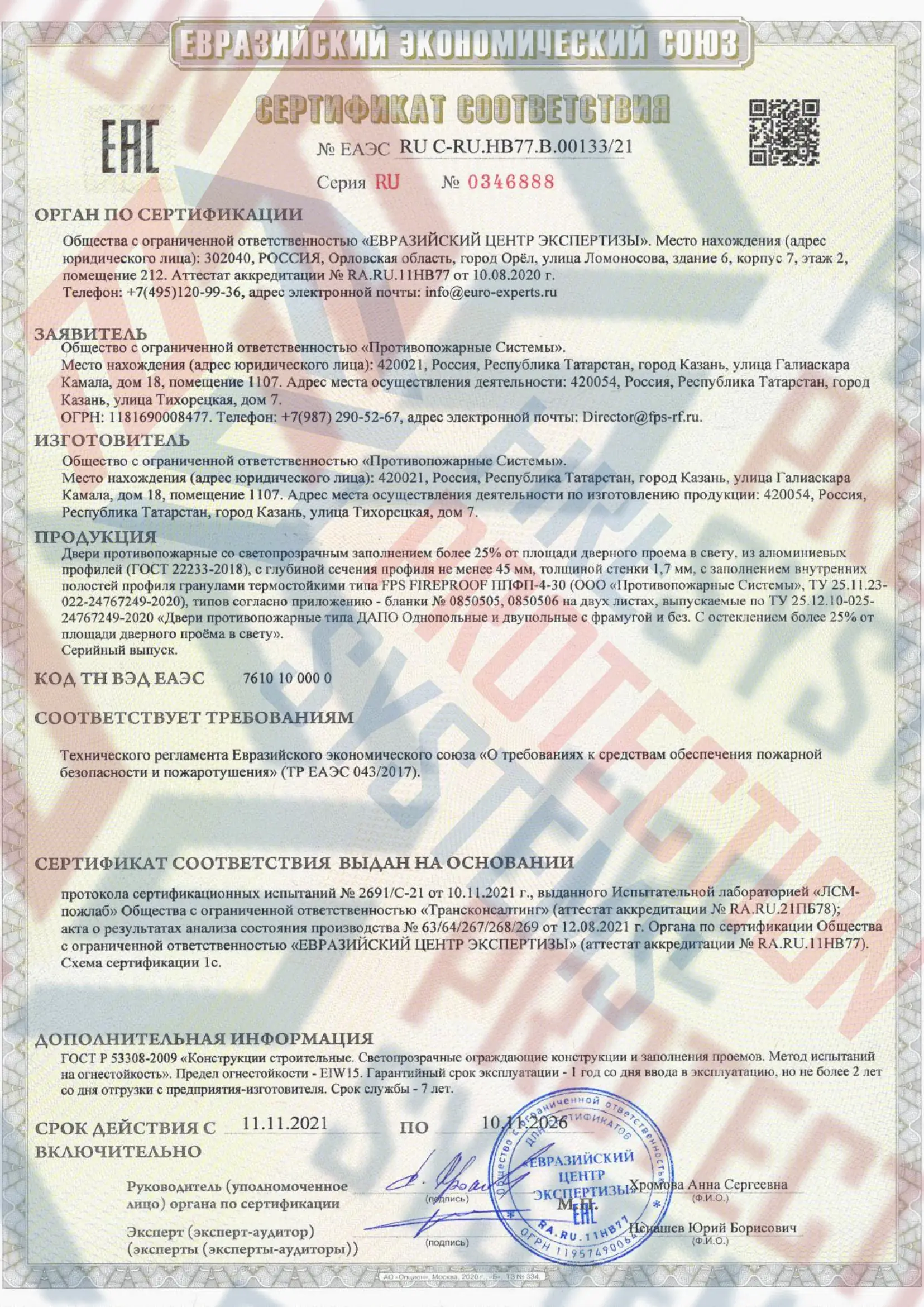 Проверенная огнестойкость – сертифицированный класс EIW 15 (15 минут целостности + теплового излучения);