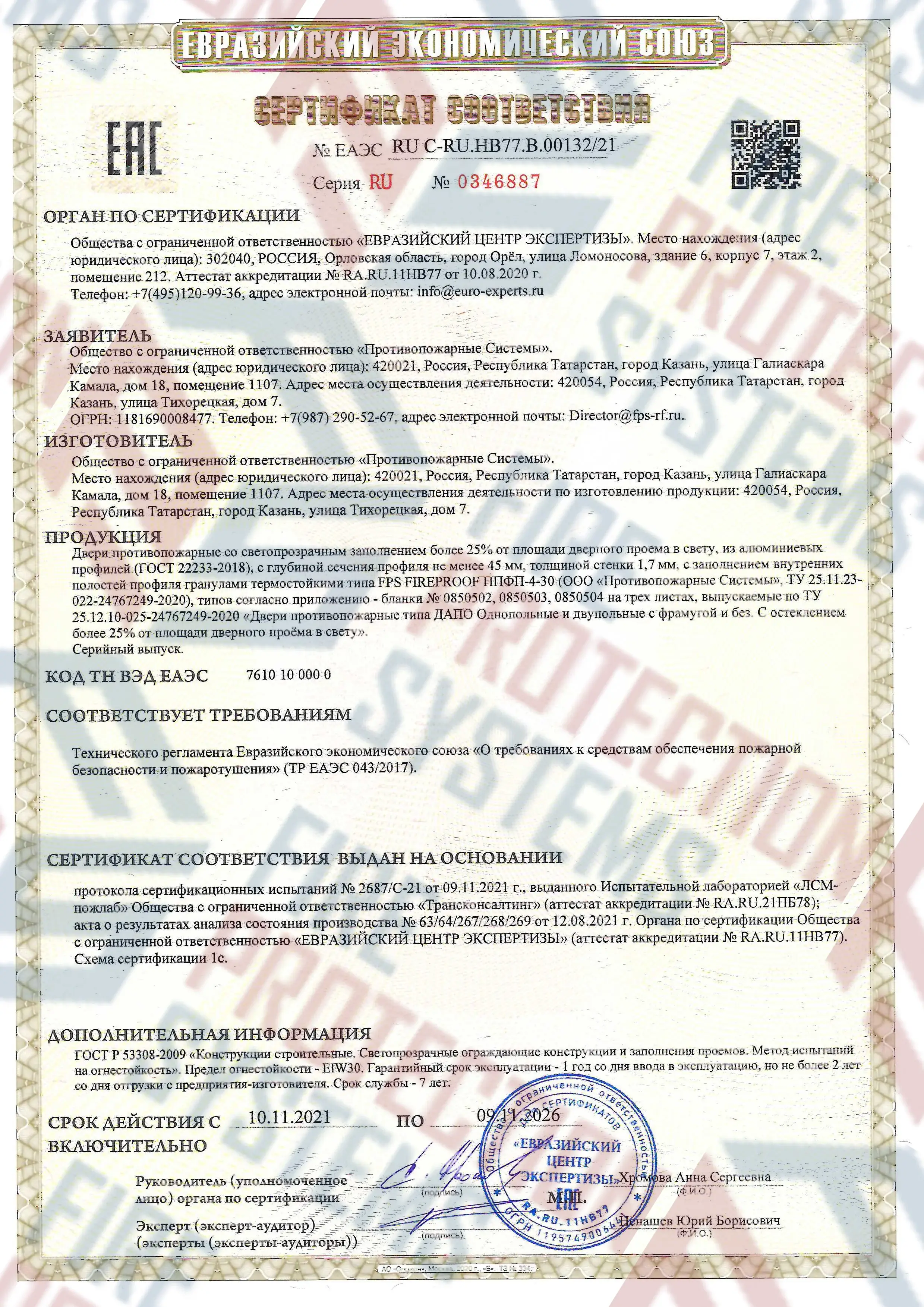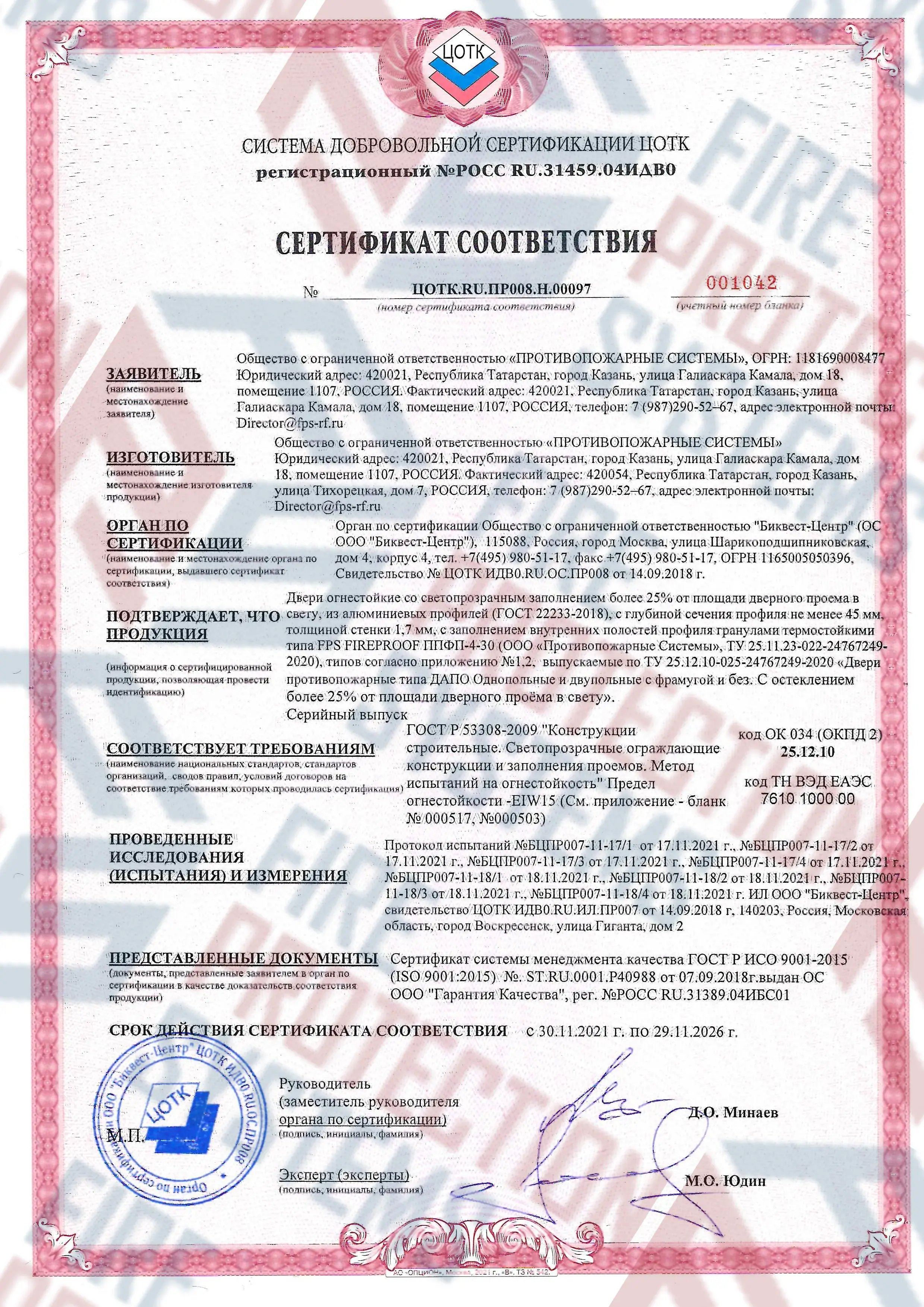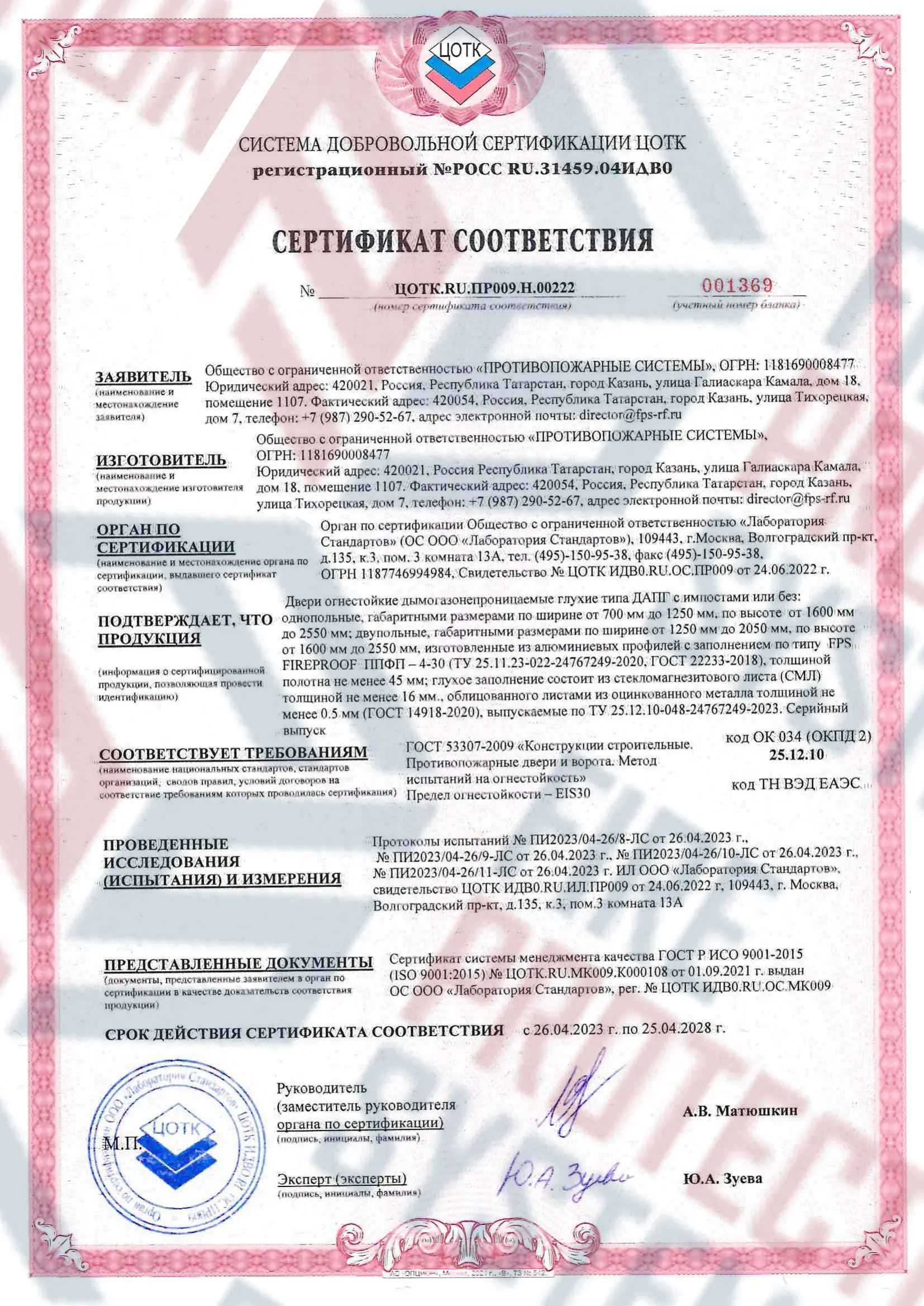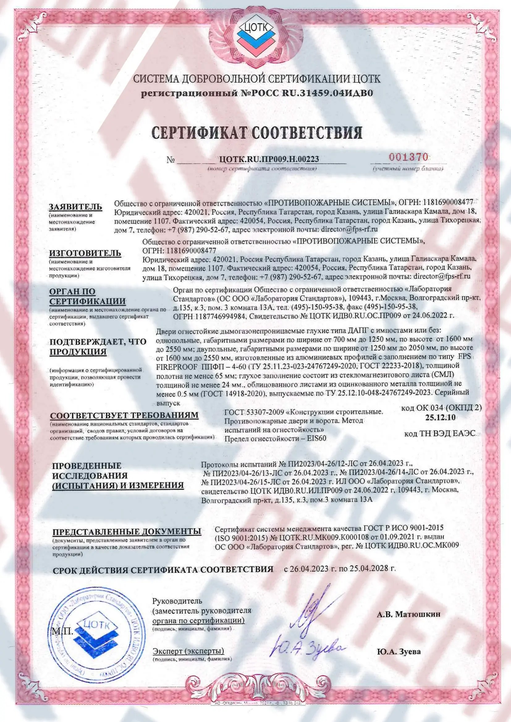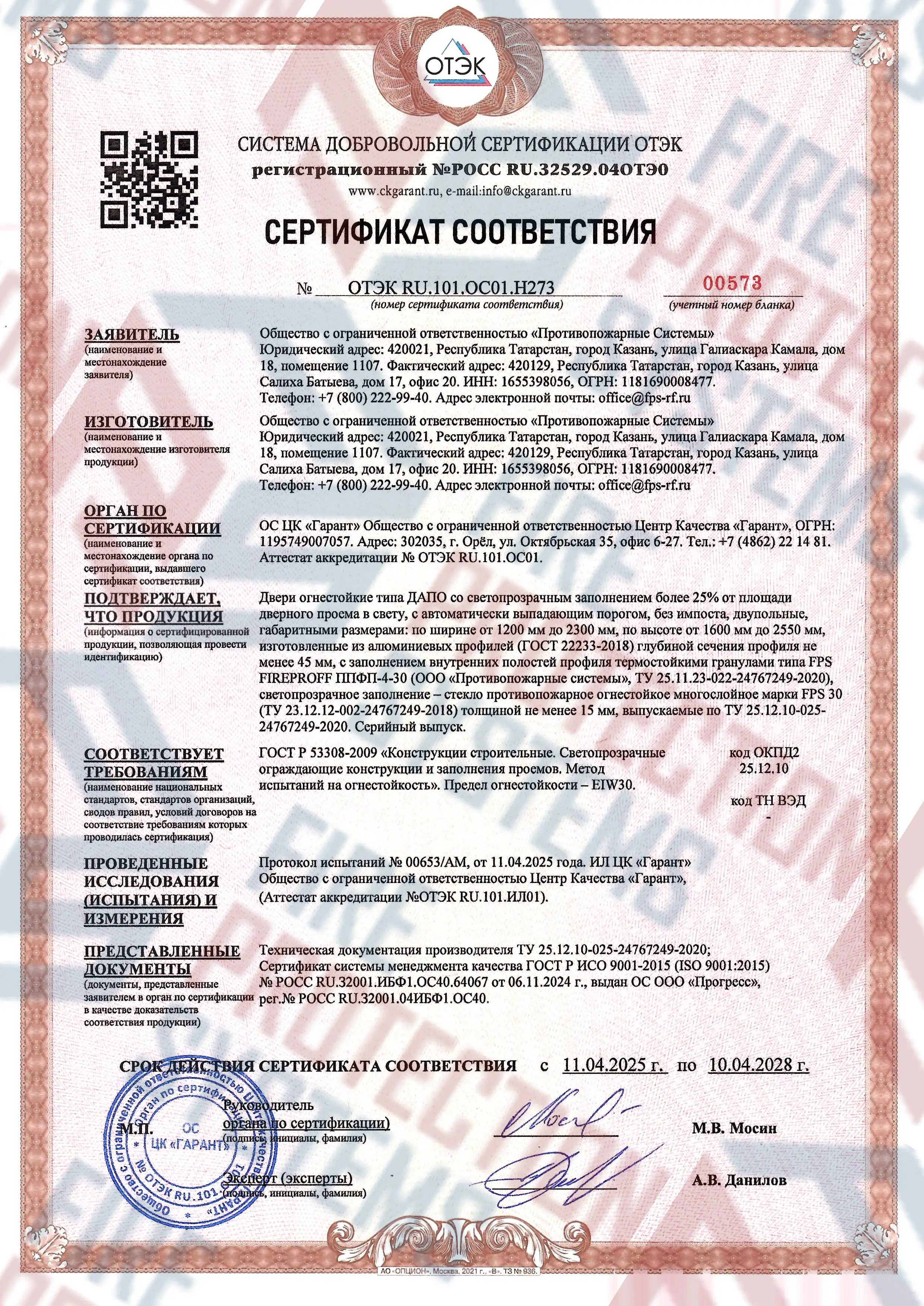Сертификация – полное соответствие требованиям к противопожарным преградам 1-го типа.